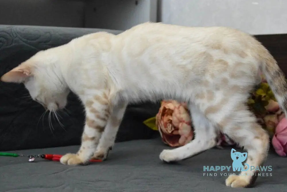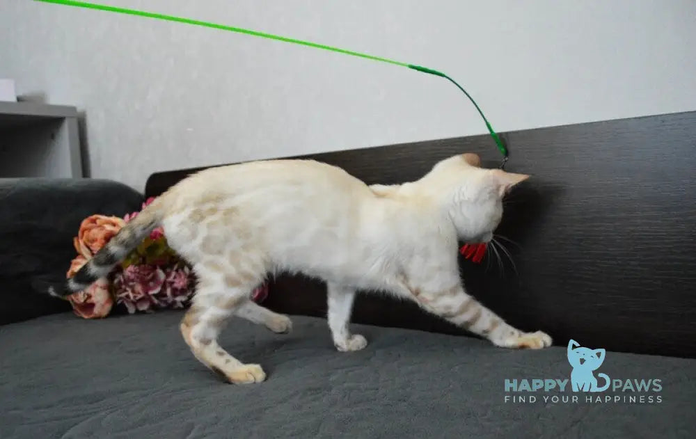 Meet your striking Kai Bengal male—a captivating feline showcasing the distinctive black spotted tabby pointed pattern. This breed combines wild aesthetics with domesticated temperament, featuring a muscular build, intelligent eyes, and the signature spotted coat that makes Bengals instantly recognizable. Known for their active, playful nature and strong bonds with their families, Kai Bengals thrive in engaging environments where they can climb, explore, and interact. Their pointed coloring adds dramatic contrast to their spotted markings, creating an exotic appearance. These cats demand mental stimulation and physical activity but reward devoted owners with loyalty and entertaining antics. Ideal for experienced cat enthusiasts seeking a dynamic, visually stunning companion.