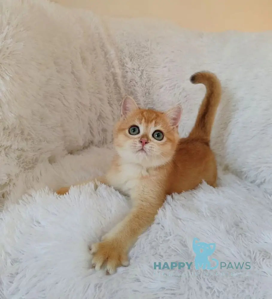 Kant represents the pinnacle of British Shorthair breeding excellence. This striking male showcases the coveted black golden chinchilla coloration—a rare and sophisticated pattern where each hair is tipped with black, creating a luminous, shimmering effect against a warm golden undercoat. His dense, plush double coat and robust build exemplify breed standards, while his calm, affectionate temperament makes him an exceptional companion. Ideal for discerning cat enthusiasts seeking a pedigreed feline with distinctive aesthetics and a gentle disposition.