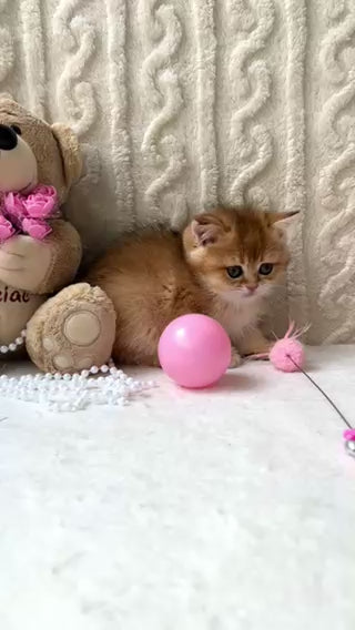 Kate is a female British Shorthair cat with a striking black golden shaded coat. Known for their dense, plush fur and calm temperament, British Shorthairs like Kate make affectionate and loyal companions. Her unique coloring adds a sophisticated touch, enhancing the breed’s classic round-faced, sturdy appearance. Ideal for families or individuals seeking a gentle, low-maintenance pet with a distinguished look.
