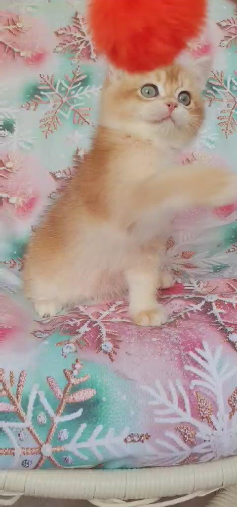 Keks is a stunning British Shorthair male showcasing the rare black golden chinchilla coat pattern. This breed is renowned for its robust build, round face, and dense double coat that requires regular grooming to maintain its lustrous appearance. British Shorthairs are known for their calm, easygoing temperament and adaptability to various living environments. Keks combines the breed's characteristic gentle nature with the striking visual appeal of his unique coloring, making him an exceptional choice for those seeking a loyal, low-maintenance companion with distinctive aesthetic qualities.