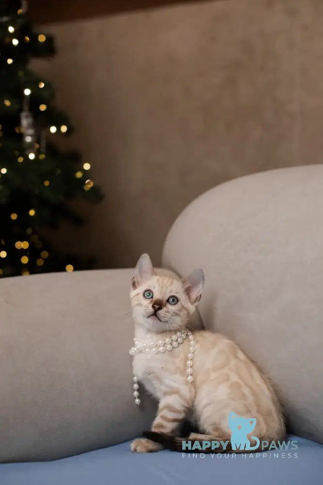 Meet Kiwi, an exquisite Bengal female showcasing the coveted seal lynx point pattern. This stunning cat displays the breed's signature spotted or marbled coat with striking contrast between her seal-colored points and lighter body. Bengal females of this caliber are prized for their athletic build, intelligent temperament, and captivating appearance. Kiwi combines the wild aesthetic of her ancestry with a domesticated, affectionate personality. Her seal lynx coloring—characterized by dark brown points against a cream or ivory base—creates a truly distinctive look. Ideal for experienced cat enthusiasts seeking a remarkable companion with exceptional beauty and engaging character.