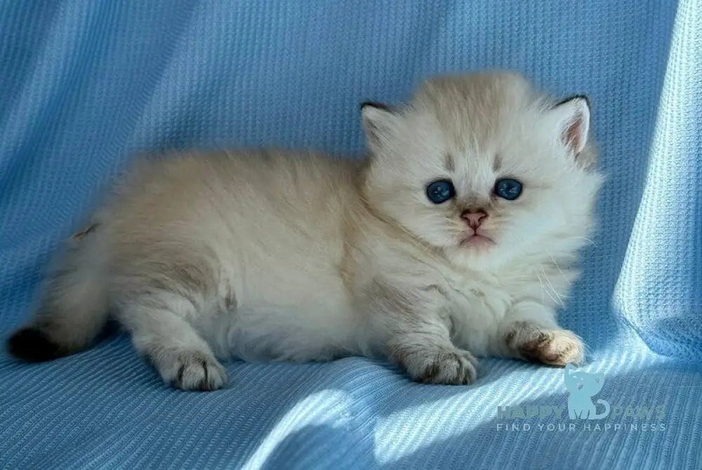 Knopa is a female Munchkin cat distinguished by her unique pointed coloration. This breed is known for its short legs and agile yet playful nature, making Knopa an ideal companion for those seeking an affectionate and lively pet. Her pointed markings highlight her elegant features, while her friendly temperament ensures she adapts well to family environments. Perfect for cat enthusiasts who appreciate distinctive physical traits combined with a charming personality.