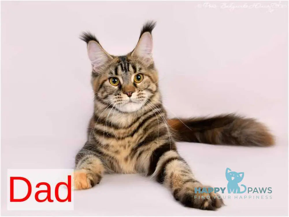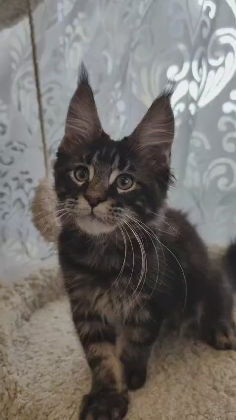 Meet Kronas, a striking black tabby Maine Coon male with the distinctive features this majestic breed is renowned for. Maine Coons are celebrated for their impressive size, intelligent temperament, and gentle disposition, making them exceptional companions for families and experienced cat enthusiasts alike. Kronas combines the breed's characteristic muscular build, tufted ears, and luxurious coat with the classic beauty of black tabby markings. Known for their playful yet calm nature, Maine Coons like Kronas adapt well to various living environments and enjoy interactive engagement. His pedigree ensures the health and behavioral traits that define this beloved breed, offering you a remarkable feline companion with both striking appearance and wonderful personality.