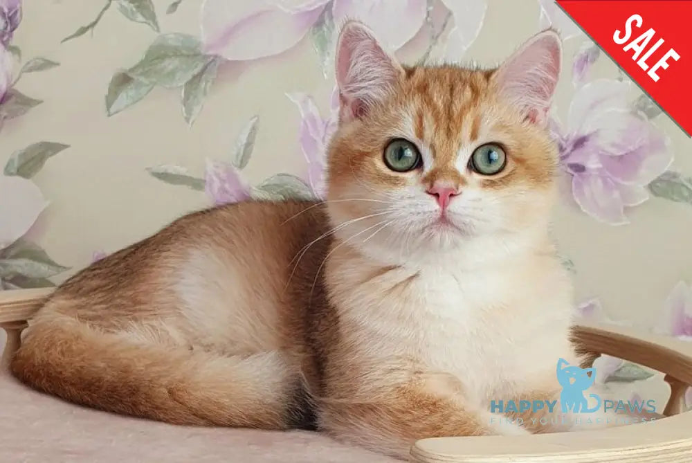 The Kruasan British Shorthair male in chocolate golden chinchilla showcases the breed’s signature plush coat and robust build, enhanced by a rare and striking color pattern. This cat combines the British Shorthair’s calm temperament and strong health with the unique elegance of the golden chinchilla shading, making it an exceptional companion for enthusiasts seeking both beauty and temperament in a pedigree feline.