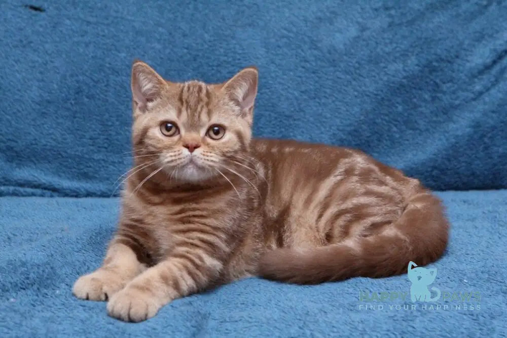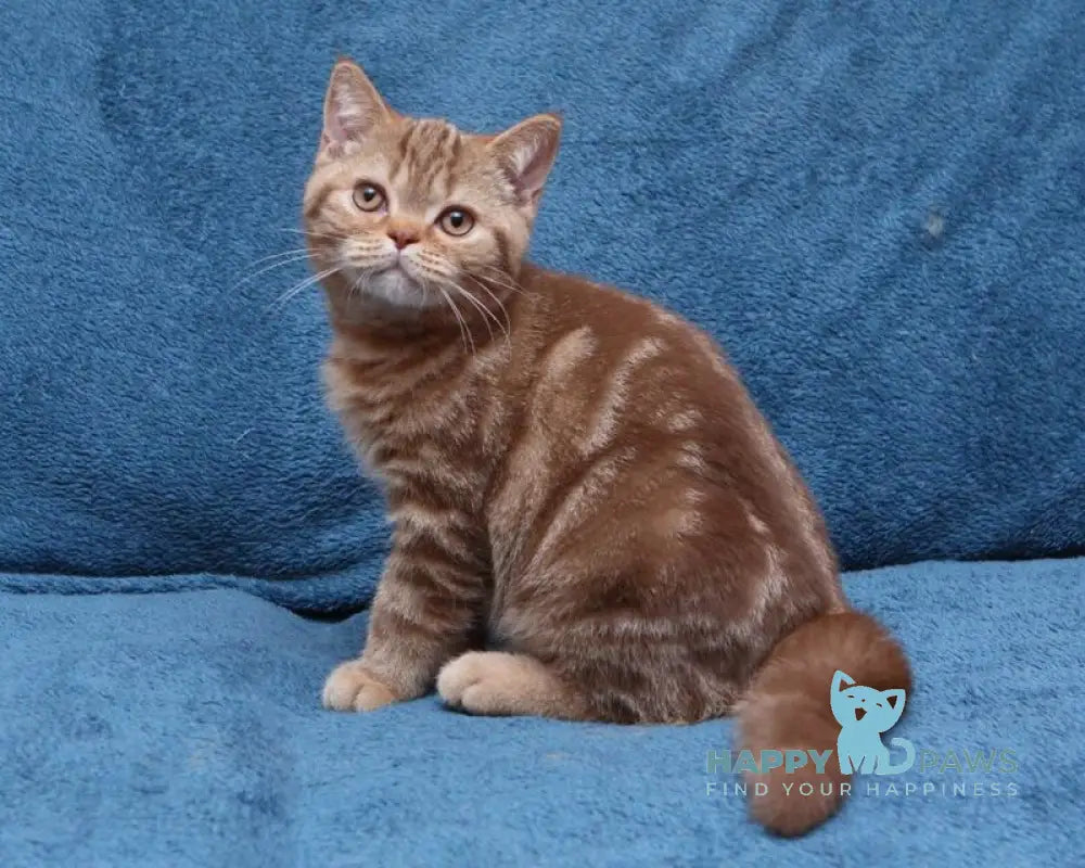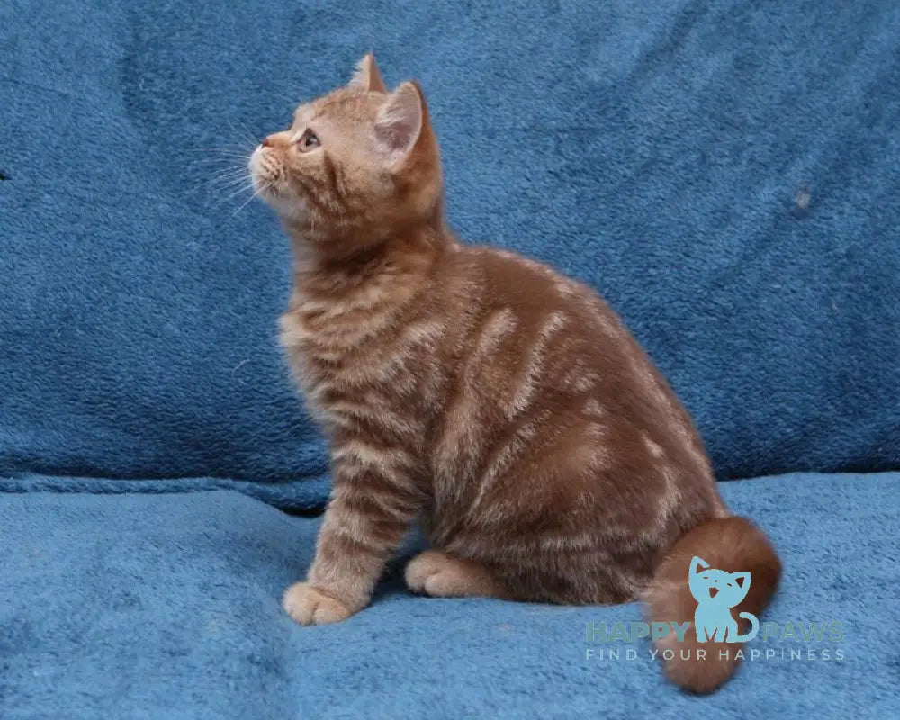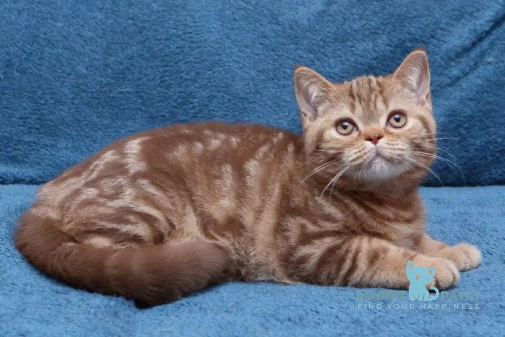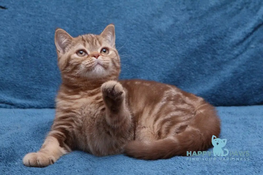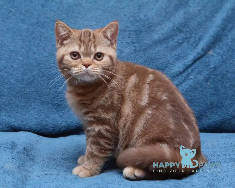 The Kuzma British Shorthair male, in a rare cinnamon tabby coat, exemplifies the breed’s signature dense, plush fur and muscular build. This cat combines a calm, affectionate temperament with striking color patterns, making it an ideal companion for those seeking both elegance and steady personality. Perfect for households wanting a low-maintenance, yet distinctly beautiful feline with a well-rounded, gentle disposition.