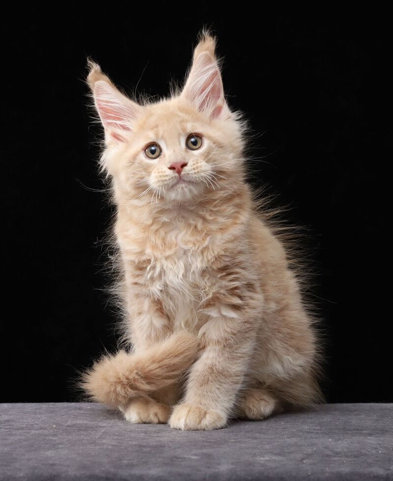 Larry is a distinguished male Maine Coon with a striking cream tabby coat, known for the breed’s signature tufted ears and luxurious fur. His calm, intelligent nature paired with his robust, muscular build exemplifies the breed’s reputation for being affectionate and highly sociable. Ideal for families or individuals seeking a gentle yet majestic companion, Larry offers the perfect blend of charisma and companionship inherent to Maine Coons.