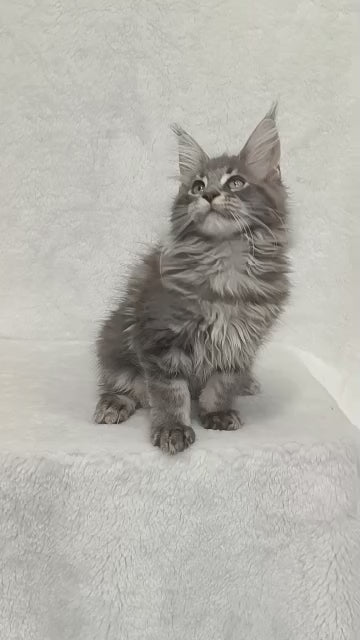 Lavandia is a striking female Maine Coon with a captivating blue tabby coat. Known for their large size and gentle temperament, Maine Coons are affectionate and intelligent companions. Lavandia’s distinctive tabby pattern highlights her robust build and fluffy fur, making her an elegant and healthy addition to any cat enthusiast’s home. Expertly bred for temperament and appearance, she promises years of loyal companionship combined with the classic Maine Coon charm.