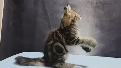 Meet your majestic Lebanon Maine Coon—a striking black tabby male with the distinctive polydactyl trait that adds character to his impressive paws. Maine Coons are renowned for their gentle temperament, intelligence, and impressive size, making them exceptional companions for families and experienced cat enthusiasts alike. This polydactyl beauty combines the breed's legendary loyalty with a naturally sociable nature. Expect a devoted, playful friend who thrives on interaction and enjoys being part of household activities. His luxurious coat and commanding presence make him a showstopper, while his affectionate personality ensures he'll quickly become the heart of your home.