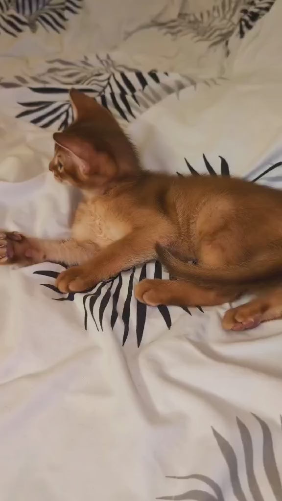 Meet Leo, a stunning purebred Abyssinian male with a rich sorrel coat that showcases the breed's signature ticked pattern. This vibrant coloring features warm, reddish-brown tones that intensify with maturity, creating a striking appearance. Leo embodies the Abyssinian temperament—intelligent, active, and deeply affectionate. Known for their curiosity and playful nature, Abyssinians form strong bonds with their owners and thrive in interactive environments. Leo's alert expression and muscular build reflect the breed's natural athleticism and grace. An ideal companion for those seeking an engaging, devoted feline with exceptional personality and distinctive beauty.
