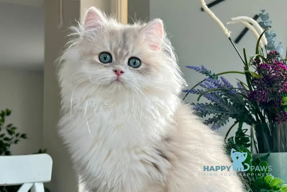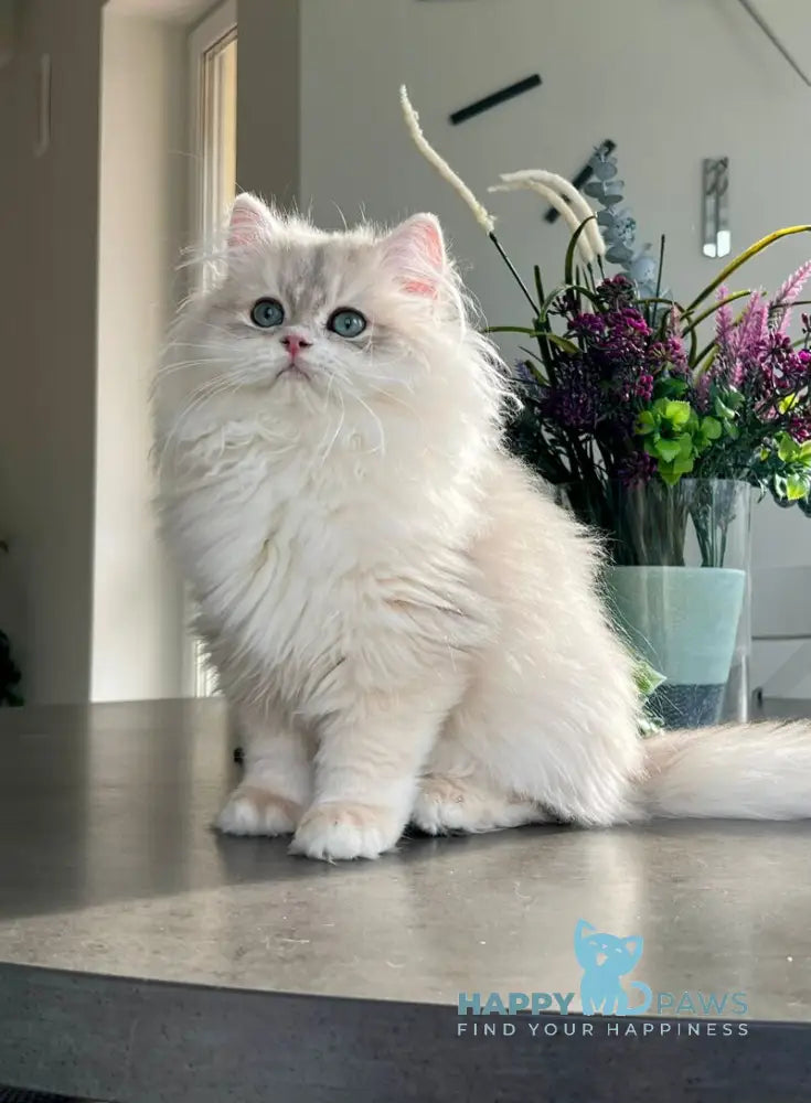 Leo is a stunning British Longhair male with a rare blue golden chinchilla coat that showcases exceptional coloring and depth. This breed is renowned for its calm, gentle temperament and striking round face with full cheeks. Leo's plush, dense double coat requires regular grooming to maintain its luxurious appearance and prevent matting. British Longhairs are known for being affectionate yet independent companions, making them ideal for families seeking a loyal, low-energy feline friend. His distinctive coloring and breed characteristics make Leo a truly remarkable addition to any home.