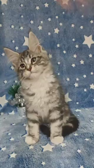 Leo is a stunning Maine Coon male showcasing the classic black silver tabby pattern beautifully accented with white markings. This majestic breed is renowned for its impressive size, intelligent temperament, and luxurious long coat. Maine Coons are known for their gentle, sociable nature and adaptability to family life, making them exceptional companions. Leo's striking coloration and breed characteristics promise a captivating presence in any home. As a purebred Maine Coon, he represents the finest qualities of this beloved feline breed—combining elegance, personality, and charm.