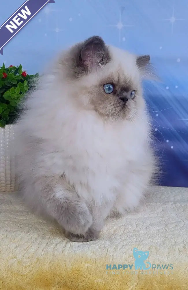Meet Leo, a stunning blue pointed Persian male cat with the classic elegance this breed is renowned for. His striking blue-gray coat contrasts beautifully with his distinctive darker points on the face, ears, and paws, creating the sophisticated colorpoint pattern that defines this variety. Leo embodies the Persian breed's gentle temperament, calm demeanor, and affectionate nature, making him an ideal companion for those seeking a serene, loving feline friend. His luxurious long coat requires regular grooming to maintain its pristine condition and health. Perfect for dedicated cat enthusiasts who appreciate the refined beauty and companionable personality of a purebred Persian.