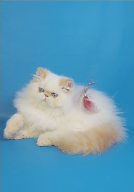 Leo is a stunning red tabby pointed Persian male with the breed's signature luxurious coat and distinctive facial structure. His warm red coloring beautifully contrasts with his pointed markings, creating an eye-catching appearance. This gentle giant exhibits the calm, affectionate temperament Persians are renowned for, making him an ideal companion for families seeking a devoted and serene pet. His striking features and loving nature make Leo a remarkable addition to any household.