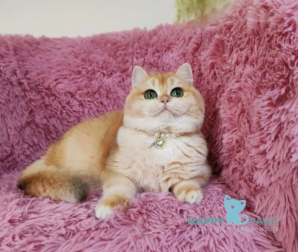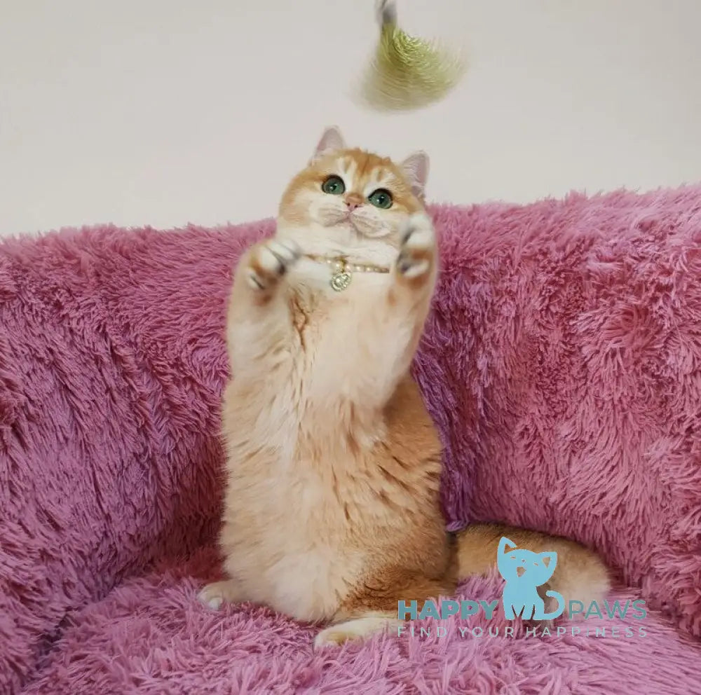 Liana is a British Shorthair female with a stunning black golden chinchilla coat. Her fur has a soft, plush texture, giving her an elegant and luxurious appearance. With her round eyes and calm demeanor, she exudes a sense of quiet charm. Liana’s gentle nature makes her a delightful companion, always ready to curl up and enjoy a peaceful moment.