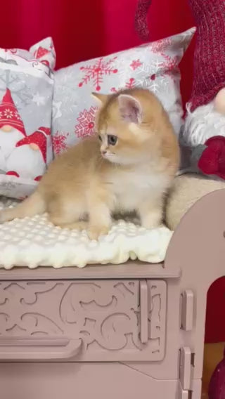 Lira is a stunning British Shorthair female showcasing the coveted black golden shaded coat pattern. This rare coloration features deep black tipping that gradually transitions to a luminous golden undercoat, creating an elegant, multi-dimensional appearance. British Shorthairs are renowned for their calm temperament, robust health, and distinctive round face with full cheeks. Lira combines these breed hallmarks with exceptional beauty, making her an outstanding choice for discerning cat enthusiasts seeking a companion with both striking aesthetics and a gentle, even-tempered nature.