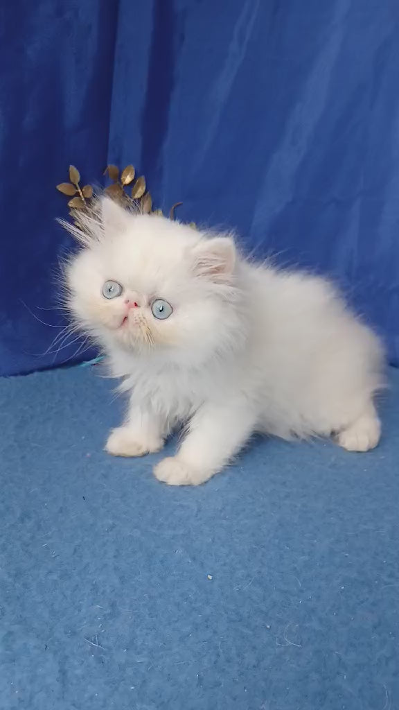 Meet Lotos, a stunning white Persian male cat with the breed's signature luxurious coat and gentle temperament. This majestic feline showcases the classic Persian beauty—a flat face, round eyes, and flowing white fur that demands regular grooming to maintain its pristine appearance. Lotos embodies the calm, affectionate nature Persians are renowned for, making him an ideal companion for those seeking a devoted, serene household pet. His striking appearance and composed demeanor make him a captivating addition to any loving home.