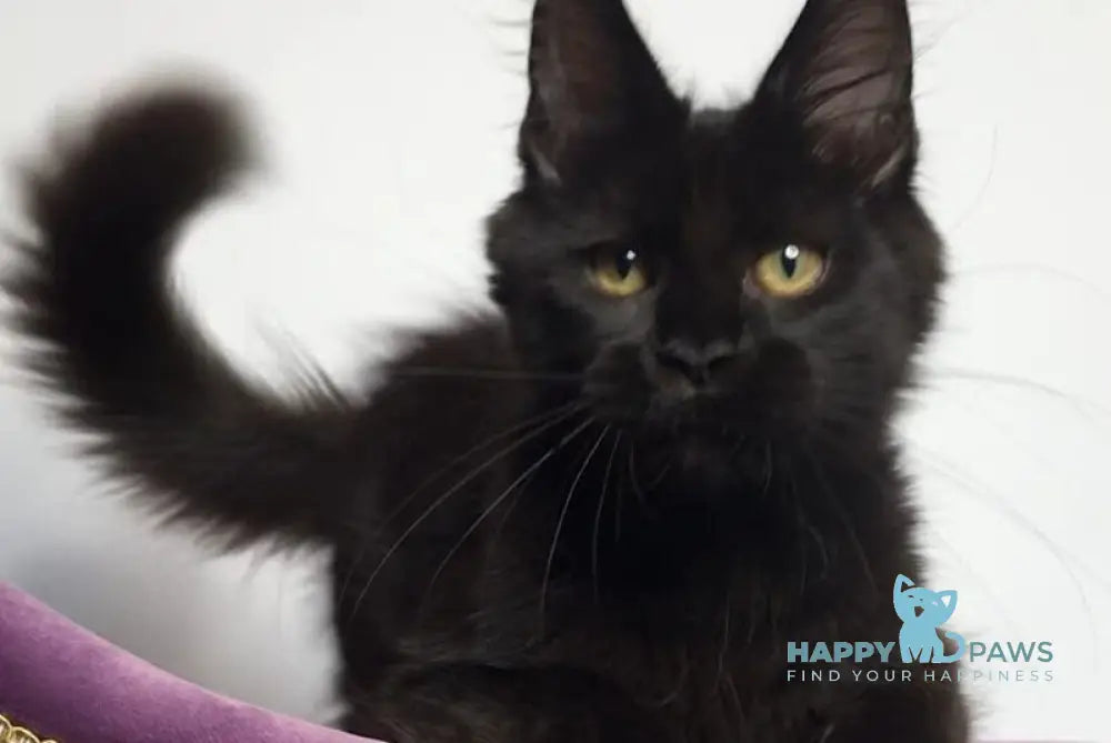 Lovis is a striking black Maine Coon male, known for his robust build and luxurious, dense coat. This breed’s natural intelligence and gentle temperament make Lovis an excellent companion for experienced cat owners seeking a majestic and affectionate pet. His distinctive tufted ears and bushy tail highlight the classic Maine Coon features, while his calm demeanor ensures he adapts well to various home environments. Lovis embodies the perfect balance of strength and grace, ideal for those who appreciate the unique qualities of this distinguished breed.