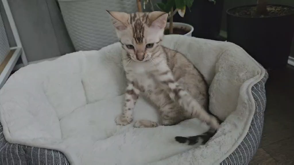 Meet Lucas, an exceptional Bengal male showcasing the breed's most coveted characteristics. His striking black spotted tabby pattern displays the distinctive rosettes and contrast that Bengal enthusiasts prize, while his pointed coloring adds sophisticated depth to his coat. This young male exhibits the athletic build and alert temperament typical of premium Bengals, combining wild aesthetics with a domesticated, affectionate personality. Lucas represents excellent breeding potential or makes an ideal companion for experienced cat owners seeking an intelligent, active feline with show-quality markings and authentic Bengal presence.