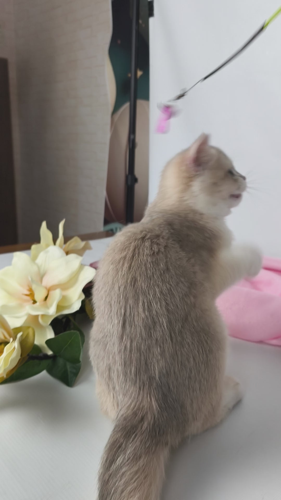 This Luntik British Shorthair male features a striking blue golden chinchilla coat, combining the classic plush texture of the British Shorthair with a unique, shimmering coloration. Renowned for their calm demeanor and sturdy build, this cat makes an excellent companion for those seeking both elegance and a gentle temperament. Its dense, soft fur requires minimal grooming while offering a luxurious touch, ideal for connoisseurs of premium feline breeds.
