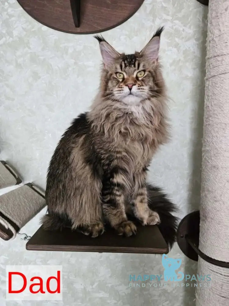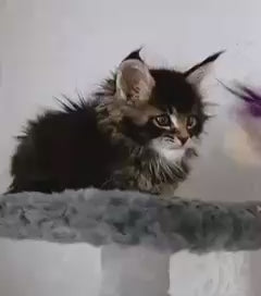 Meet your majestic Madagascar Maine Coon—a striking black ticked tabby male with the breed's signature robust build and intelligent presence. Maine Coons are renowned for their gentle temperament, making them exceptional companions for families and individuals alike. This male displays the classic ticked tabby pattern, where each hair is banded with color, creating a sophisticated, shimmering coat. Known for their playful yet calm demeanor, Maine Coons adapt well to various living environments and form strong bonds with their owners. Their impressive size and muscular frame are complemented by their surprisingly affectionate nature. Ideal for those seeking a loyal, engaging feline companion with distinctive character and charm.
