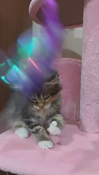 Maria is a stunning female Maine Coon showcasing the classic black tortoiseshell tabby pattern beautifully accented with white markings. This majestic breed is renowned for its impressive size, intelligent temperament, and gentle disposition, making her an exceptional companion for families seeking a devoted feline friend. Maine Coons are known for their playful, sociable nature and remarkable adaptability to various living environments. Maria's distinctive coloring and breed characteristics promise years of affection and engaging interaction.