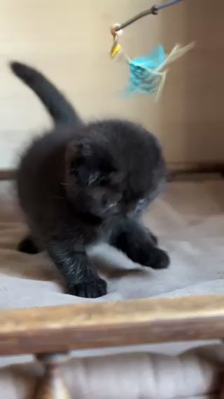 Markus is a handsome Scottish Fold male with a smooth, all-black coat. His folded ears and round, expressive eyes give him a charming and distinctive appearance. Calm and affectionate, he enjoys quiet moments as well as gentle playtime. Loyal and friendly, he quickly becomes a beloved member of the family. His sleek fur and sweet temperament make him truly special.