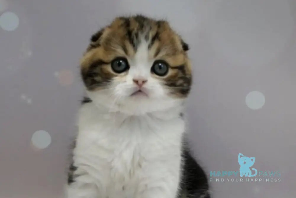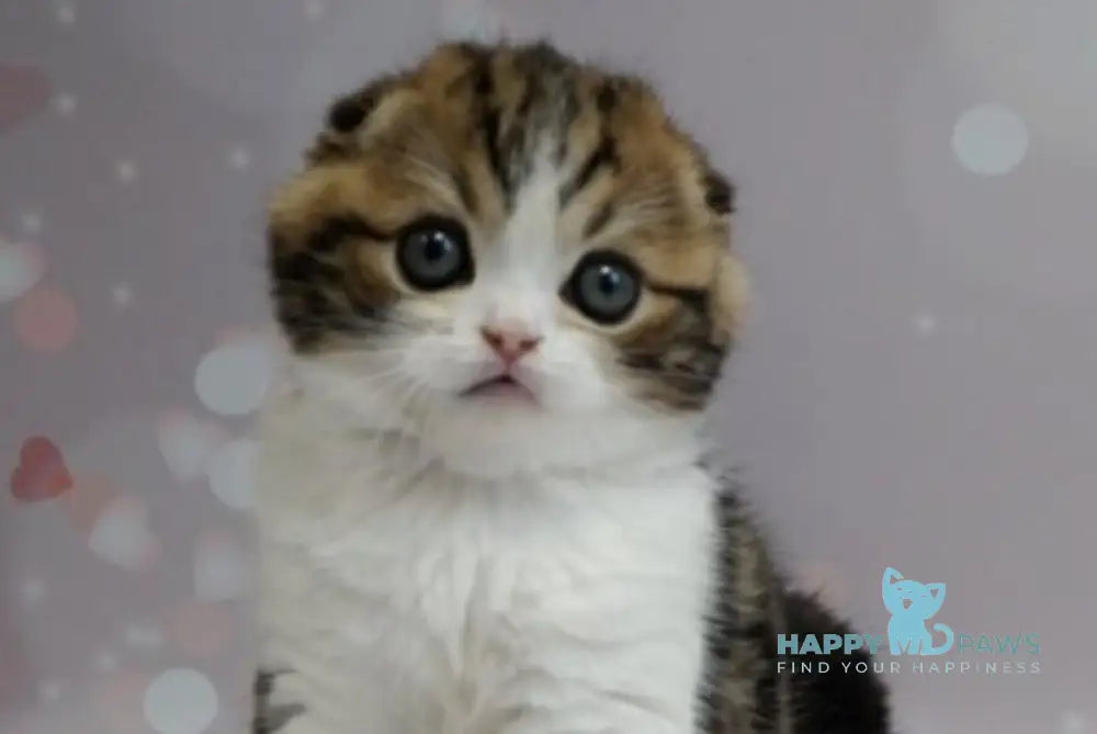 Marsel is a distinguished male Scottish Fold with striking black tabby bicolour markings. Known for their gentle temperament and unique folded ears, Scottish Folds make affectionate and adaptable companions. Marsel’s distinctive coat pattern adds to his charm, combining classic tabby stripes with contrasting bicolour patches. Ideal for those seeking a calm, intelligent pet, he embodies the breed’s trademark blend of playful curiosity and devoted companionship.