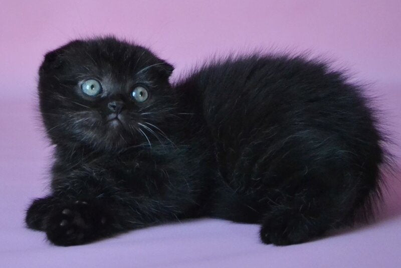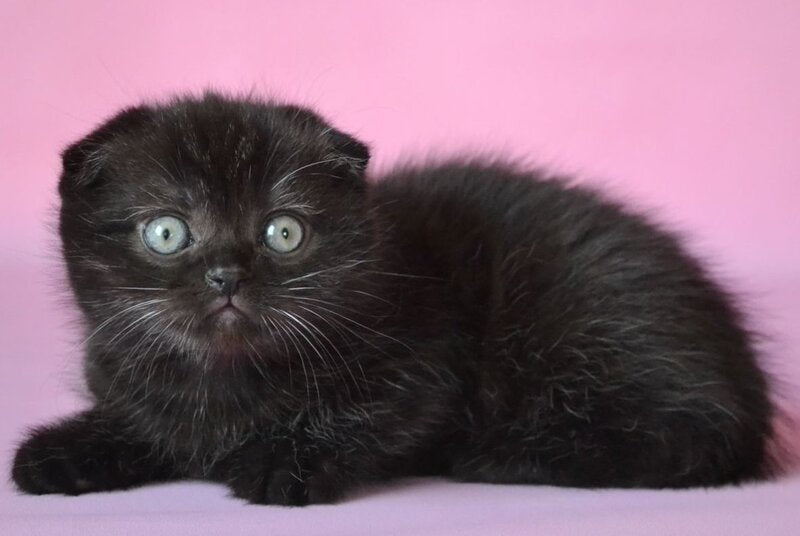 Mikola is a sleek Scottish Fold male with a deep black coat that highlights his round face and signature folded ears. Calm and affectionate, he enjoys gentle attention and quiet companionship. Curious yet composed, he explores his surroundings with a soft, playful charm. Mikola’s striking appearance and sweet temperament make him truly special.