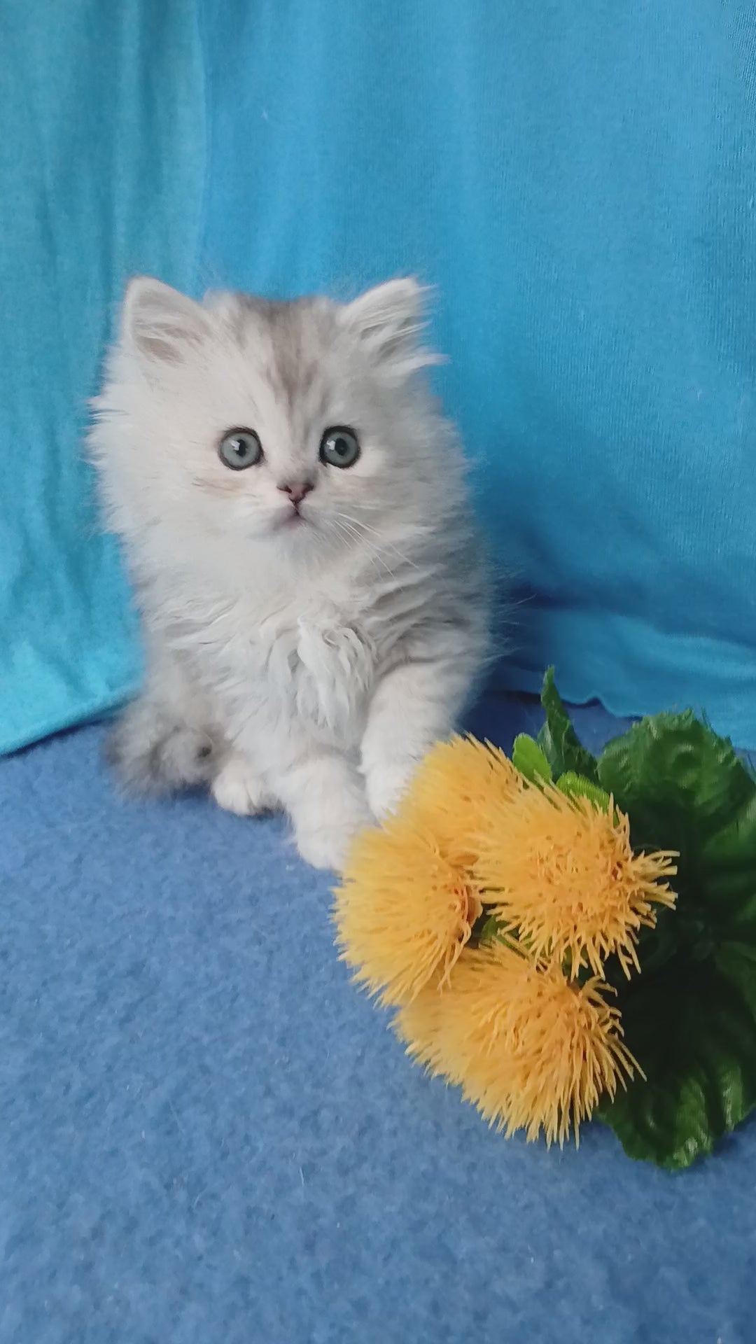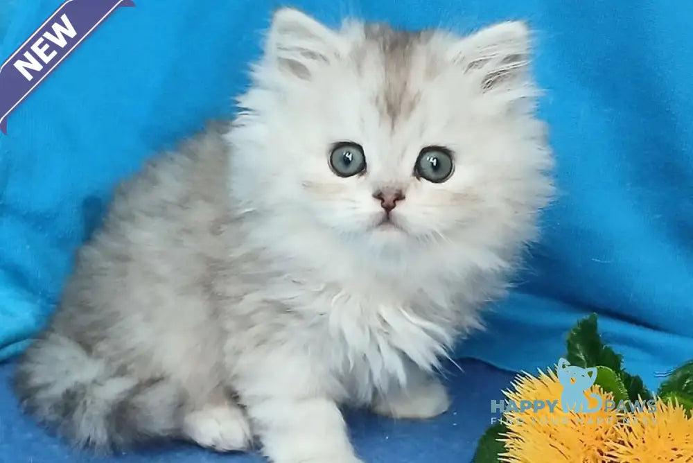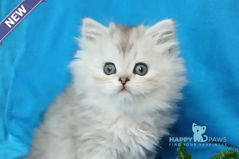Milan is a stunning British Longhair male with a luxurious silver chinchilla coat that showcases the breed's most coveted coloring. His dense, plush fur displays the characteristic tipping that creates a shimmering, ethereal appearance. This gentle giant embodies the calm, affectionate temperament British Longhairs are renowned for, making him an ideal companion for families seeking a devoted, even-tempered feline. Milan's striking green eyes and robust build exemplify breed standards, while his serene disposition ensures he'll adapt beautifully to home life. A magnificent choice for those appreciating refined feline elegance.
