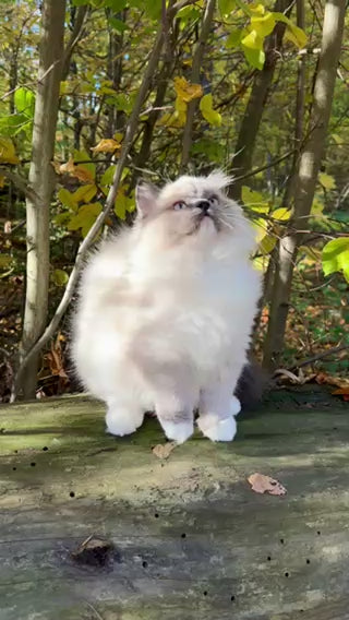 Meet Milo, a stunning blue mitted Ragdoll male with the breed's signature gentle temperament and striking colorpoint markings. Blue mitted Ragdolls display a soft, silvery-gray coat with darker points on the face, ears, and tail, complemented by white mittens on the paws—a hallmark of the mitted pattern. Ragdolls are renowned for their docile, affectionate nature and tendency to go limp when held, making them exceptional companions for families and individuals seeking a calm, interactive pet. Milo's lineage and coloring exemplify the breed standard, promising a loyal friend with the characteristic blue-eyed gaze Ragdolls are famous for.