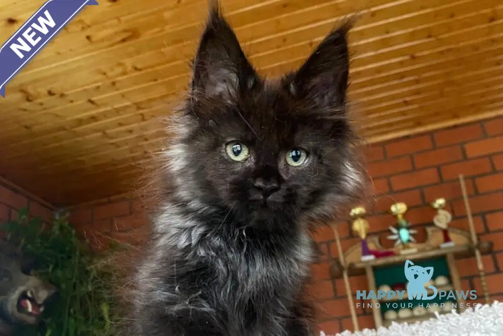 Monti is a striking black male Maine Coon known for his impressive size, luxurious fur, and friendly temperament. His deep black coat highlights the breed’s characteristic tufted ears and expressive eyes, embodying the classic Maine Coon appearance. Monti’s robust health and gentle nature make him an excellent companion and a valuable addition to any reputable breeding program focused on preserving breed standards.
