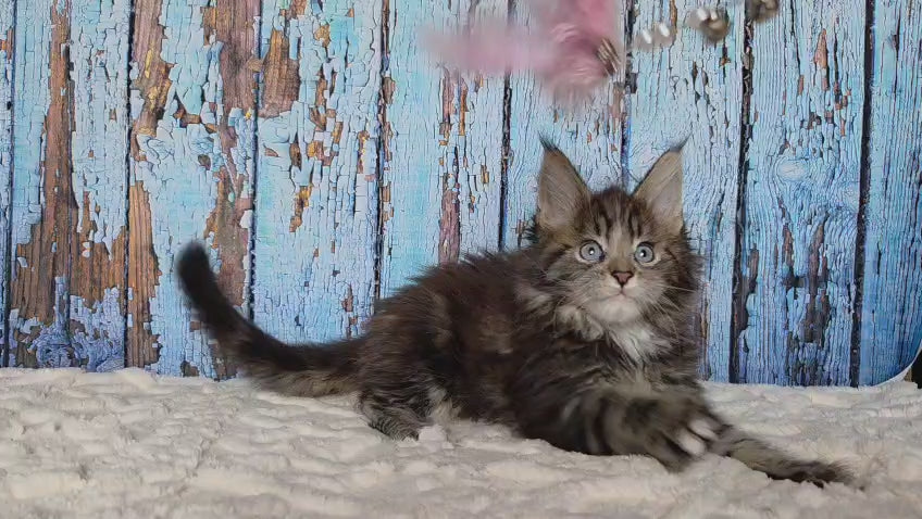 Narcissus Maine Coon male, black tabby with white