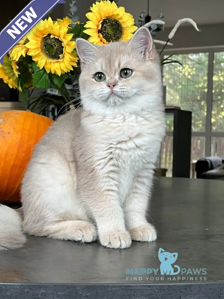 Meet Nessi, an exquisite Scottish Straight female with a stunning lilac golden shaded coat. This rare coloration combines soft lilac undertones with warm golden highlights, creating a truly distinctive appearance. Scottish Straights are known for their gentle temperament, rounded features, and affectionate nature, making them ideal companions for families and individuals alike. Nessi's striking coat pattern showcases the breed's natural elegance and charm. Whether you're a seasoned cat enthusiast or seeking a devoted feline friend, Nessi offers the perfect blend of beauty, personality, and breed excellence that Scottish Straight devotees cherish.