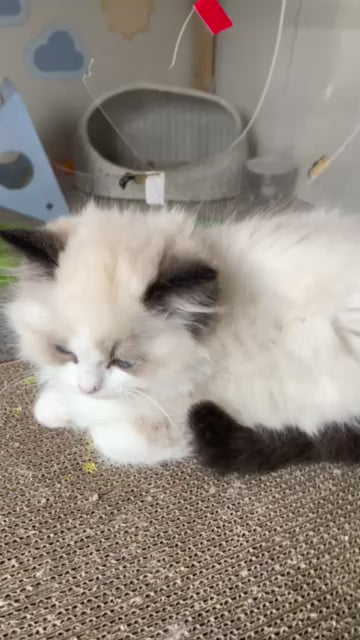 Niles is a distinguished male Ragdoll with a striking seal bicolour coat. Known for their calm demeanor and affectionate nature, Ragdolls like Niles make exceptional companions, blending elegance with gentle temperament. His distinctive coloration highlights the breed’s signature plush fur and vivid blue eyes, providing both aesthetic appeal and the characteristic softness associated with this breed. Ideal for owners seeking a poised, loving feline with a relaxed personality.