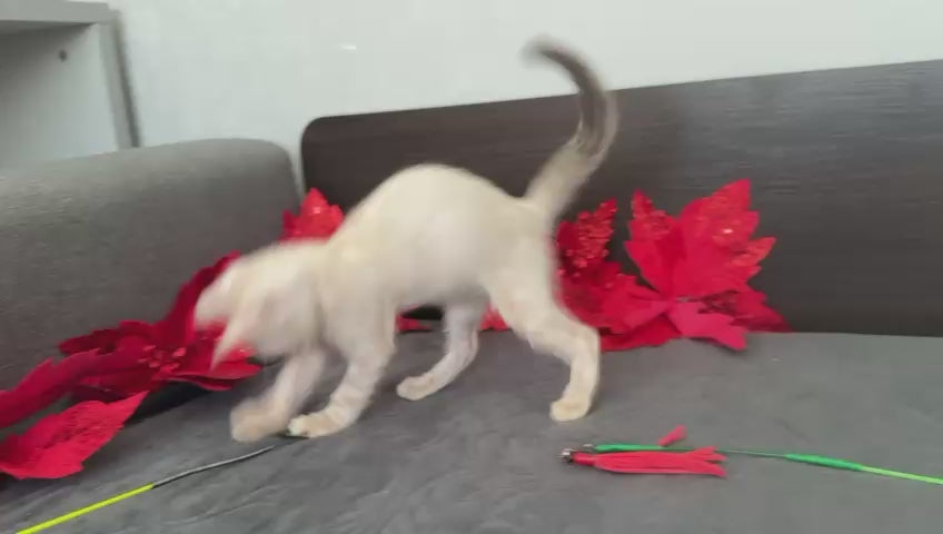 Meet Noemi Nicole, an exquisite Bengal female showcasing the breed's most coveted markings. Her striking black spotted tabby pattern contrasts beautifully against a pointed color palette, creating a truly distinctive appearance. Bengals are renowned for their athletic build, intelligent temperament, and captivating wild-cat aesthetics combined with domestic affection. Noemi Nicole embodies these hallmark traits, making her an exceptional choice for experienced cat enthusiasts seeking a companion with both visual drama and engaging personality. Her lineage and markings reflect careful breeding standards that prioritize health, temperament, and breed excellence.