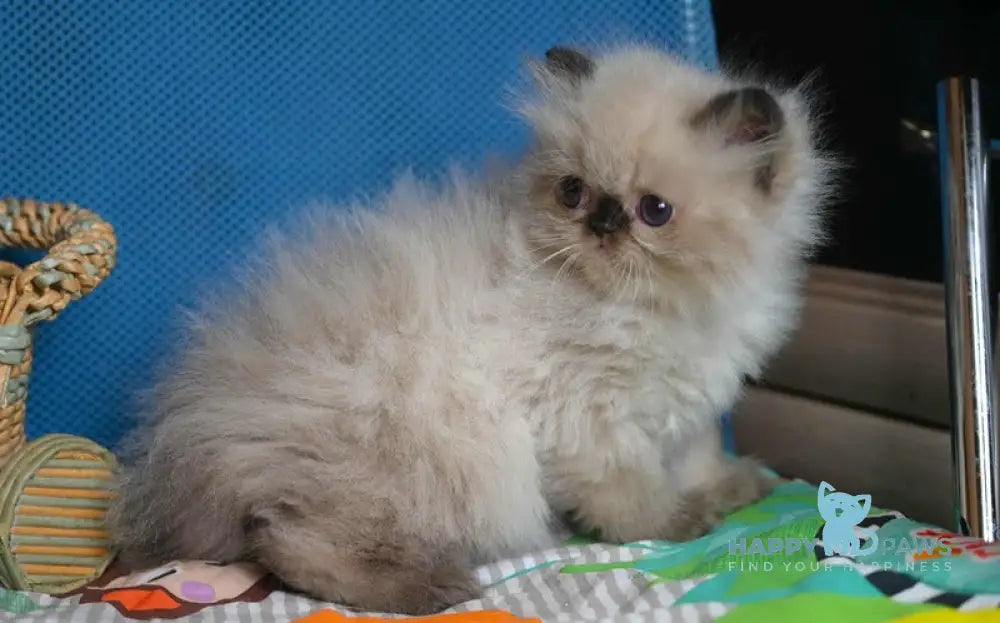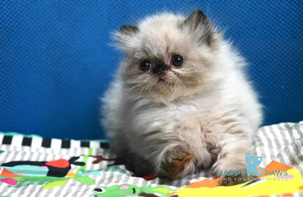 The Norman Persian male with seal pointed coloring is a distinguished feline known for its luxurious coat and striking facial markings. This breed exhibits a calm and affectionate temperament, making it an ideal companion. The seal pointed pattern highlights deep, rich tones that contrast beautifully with the soft, voluminous fur. Meticulous grooming is recommended to maintain the coat’s health and appearance, ensuring this elegant cat remains a visually captivating and gentle addition to any home.