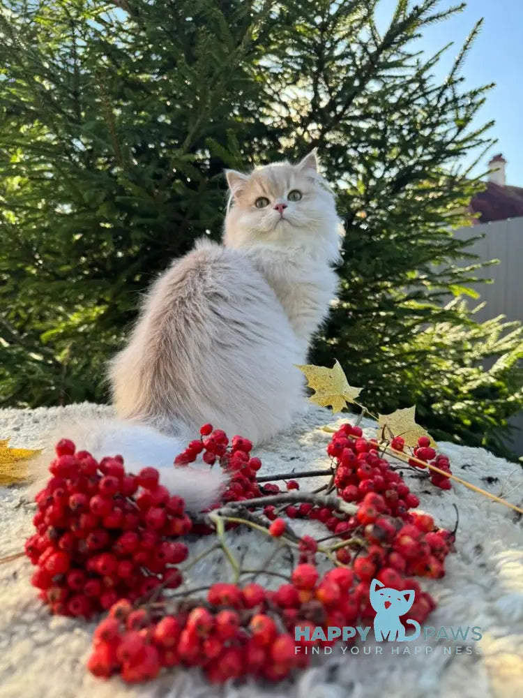 The Odri Scottish Straight female, lilac golden shaded, is a striking example of the breed’s unique charm. Her lilac golden shaded coat combines soft pastel hues with elegant shading, showcasing the breed’s distinctive plush texture and dense fur. Known for their calm temperament, Scottish Straights like Odri adapt well to various environments, making her an excellent companion. This cat’s balanced build and plush double coat reflect expert breeding standards, emphasizing health, temperament, and aesthetics. Ideal for enthusiasts seeking a serene yet visually captivating feline, Odri embodies both beauty and gentleness inherent to this breed.