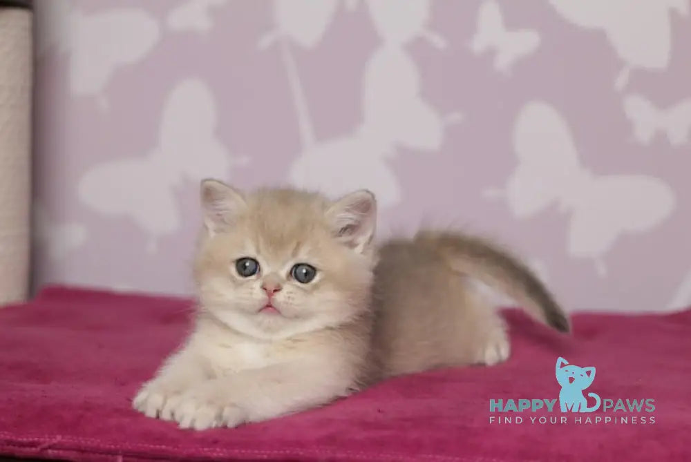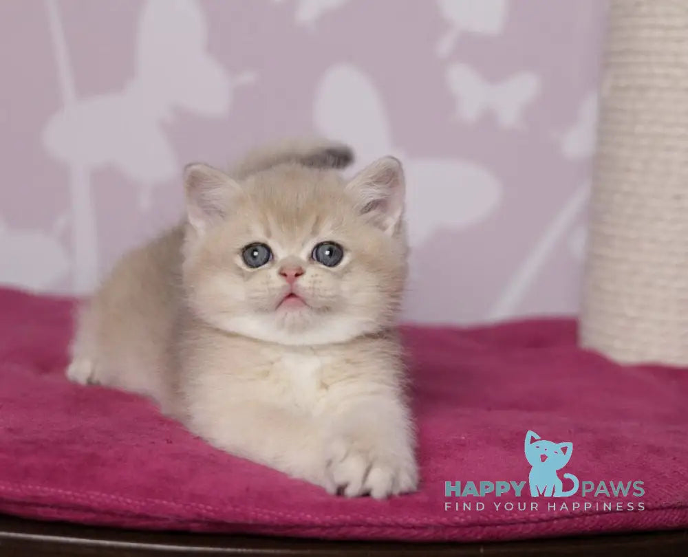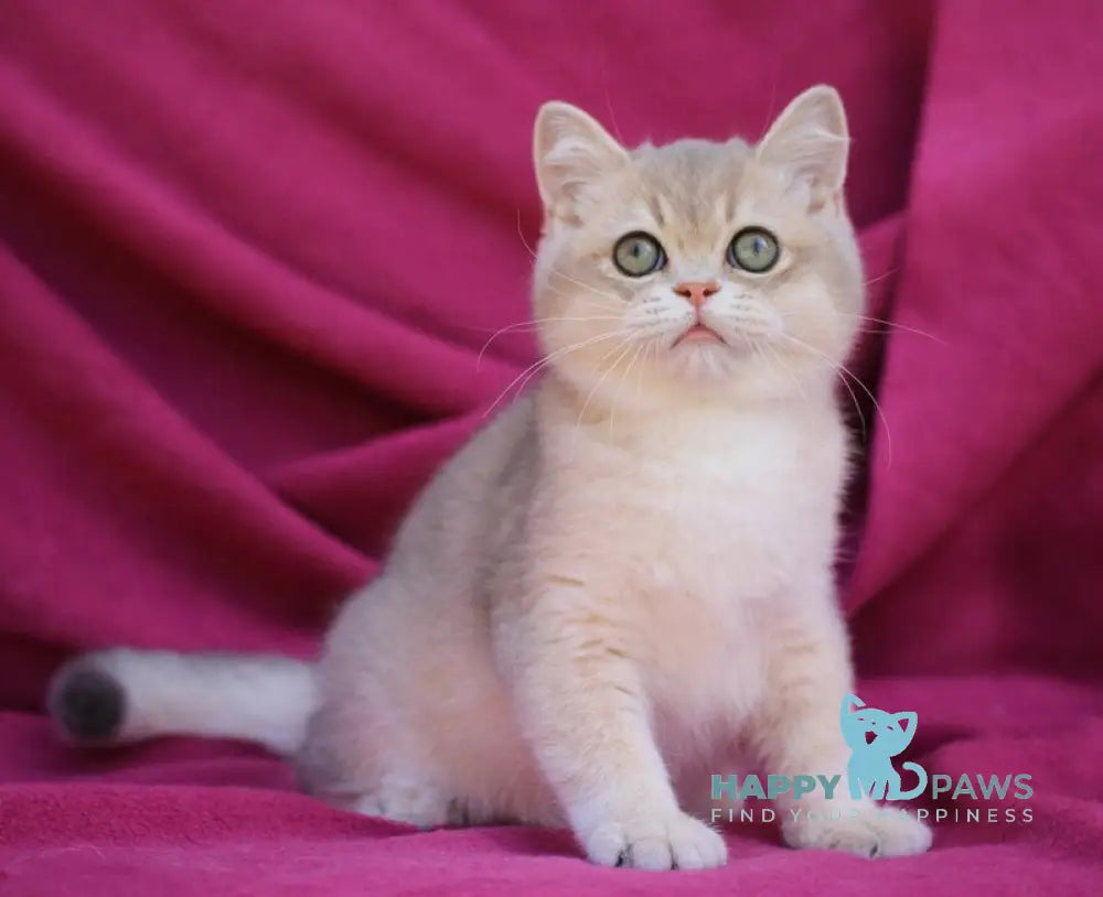 Oliver is a distinguished British Shorthair male cat, showcasing a rare blue golden shaded coat that highlights his breed’s classic plush texture and robust build. His striking coloration combines the cool elegance of blue with warm golden hues, making him a unique and captivating companion. Ideal for enthusiasts seeking a pedigree feline with both beauty and a calm, affectionate temperament.