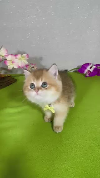 Olivia is a female British Shorthair with a distinctive black golden shaded coat, showcasing the breed’s characteristic plush and dense fur. Her calm temperament and sturdy build make her an ideal companion for a variety of households. This classic British Shorthair coloration highlights her rich, warm tones and striking eyes, reflecting the breed's well-known elegance and charm. Olivia embodies the perfect balance of beauty and temperament typical of British Shorthairs.