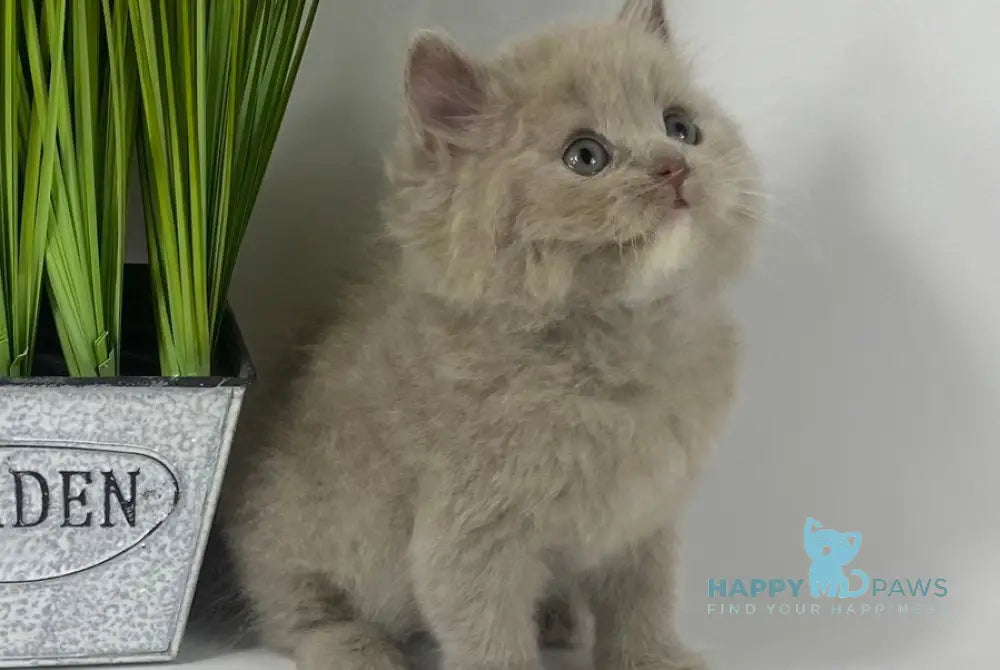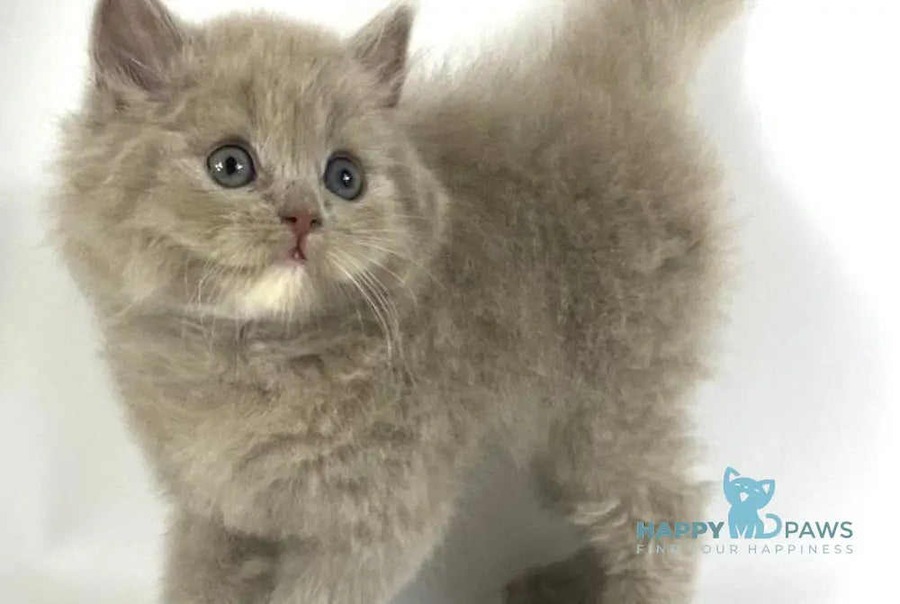 The Orion British Longhair male in lilac boasts a plush, dense coat with a distinctive soft lilac hue, exemplifying the breed's elegant appearance. Known for their calm and affectionate nature, these cats make exceptional companions, blending a sturdy British build with a gentle temperament. This male's balanced personality and striking color make him an ideal choice for those seeking a refined and loving feline friend.