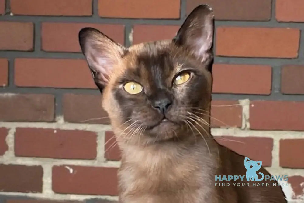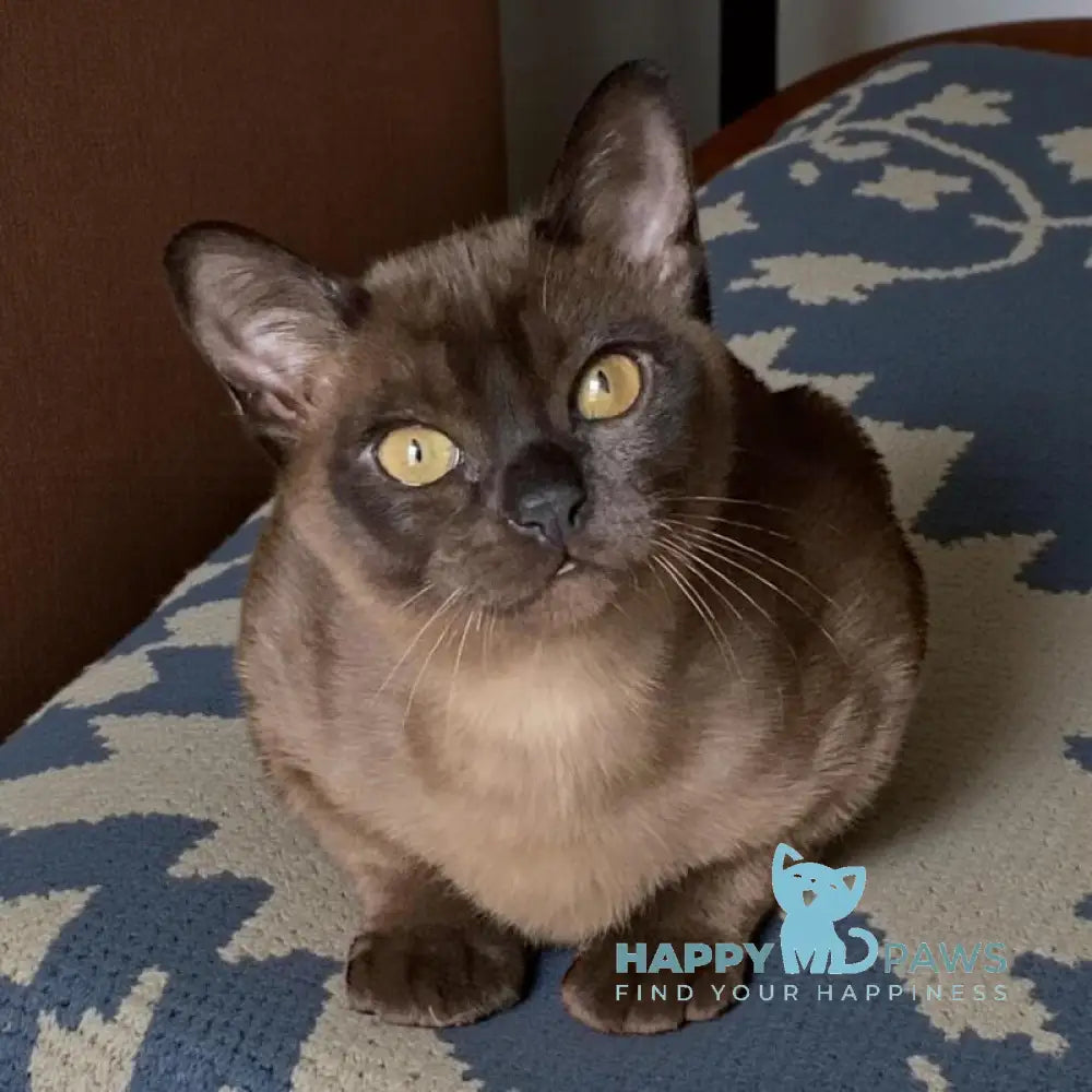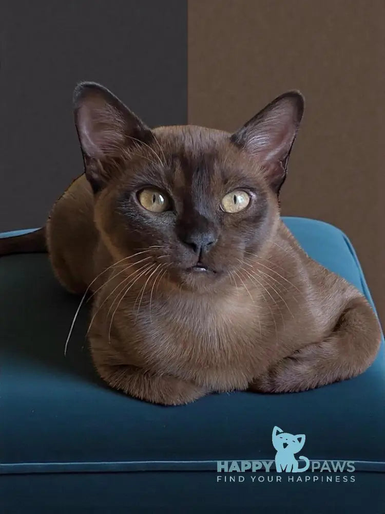 Osman is a striking black Burmese male cat, renowned for his sleek ebony coat and distinctive copper eyes that characterize the breed. Burmese cats are celebrated for their muscular, compact build and silky fur that requires minimal grooming. Known for their affectionate and social temperament, Burmese males like Osman make devoted companions who thrive on human interaction and enjoy being involved in household activities. This breed is intelligent, playful, and vocal, often forming strong bonds with their owners. Ideal for families or individuals seeking an engaging, loving feline companion with a sophisticated appearance and warm personality.