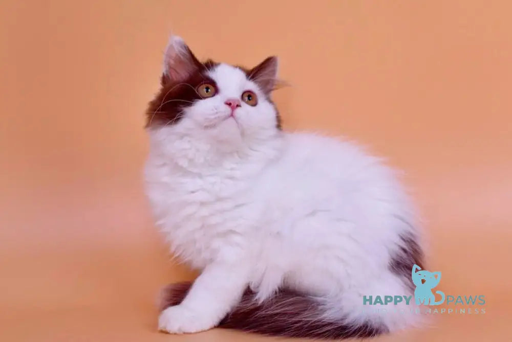 Pepa is a British Longhair female showcasing a rich chocolate bicolour coat. Known for their luxurious, dense fur and strong, balanced physique, British Longhairs combine the classic traits of the British Shorthair with a longer, softer coat. Pepa’s calm temperament and distinctive coloring highlight the breed’s charm, making her an exceptional choice for enthusiasts seeking a poised and affectionate feline companion.