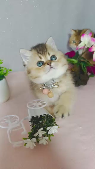Meet Polly, a stunning Scottish Straight male with a captivating black golden ticked tabby coat. This breed is renowned for its distinctive folded ears and robust, muscular build, combined with an exceptionally gentle temperament. Polly's striking ticked tabby pattern showcases intricate banding on each hair, creating a shimmering, sophisticated appearance. Scottish Straights are known for their intelligence, adaptability, and affectionate nature, making them ideal companions for families and individuals alike. With proper care and socialization, Polly promises years of loyal companionship and engaging personality.