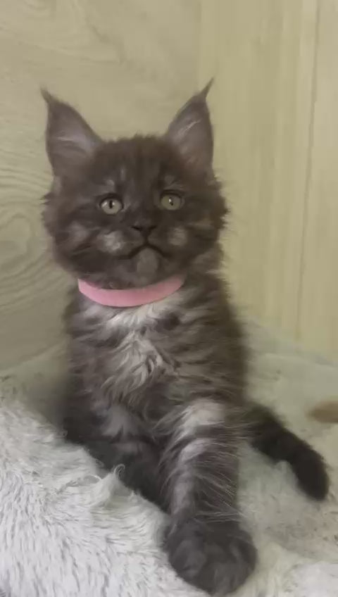 Introducing our stunning Queen Maine Coon female with a luxurious black silver coat. This majestic breed exemplifies the Maine Coon's renowned characteristics: impressive size, muscular build, and striking appearance. Her distinctive silver-tipped black fur creates an elegant, shimmering effect that turns heads. Maine Coons are celebrated for their intelligent, affectionate temperament and adaptability to family life. As a queen, she represents premium breeding standards and exceptional genetic quality. Ideal for serious breeders and those seeking a companion with the breed's legendary charm, loyalty, and playful nature. Her regal presence and gentle disposition make her a treasured addition to any discerning household.