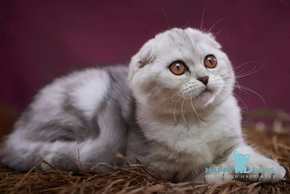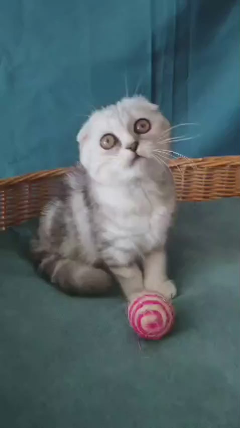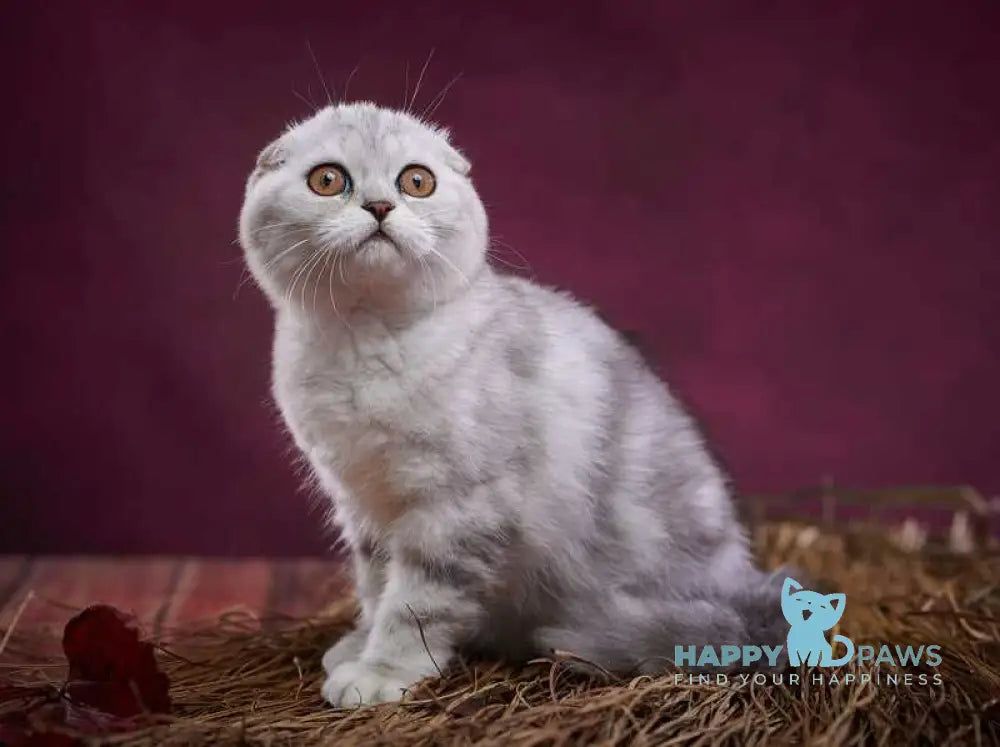 Questa Lola is a female Scottish Fold distinguished by her striking black silver tabby coat. Known for their unique folded ears and affectionate temperament, Scottish Folds make loving and calm companions. Questa Lola combines these classic breed traits with a beautiful silver tabby pattern, offering both charm and elegance to any home. Her gentle nature and distinctive appearance make her an exceptional choice for experienced cat enthusiasts.
