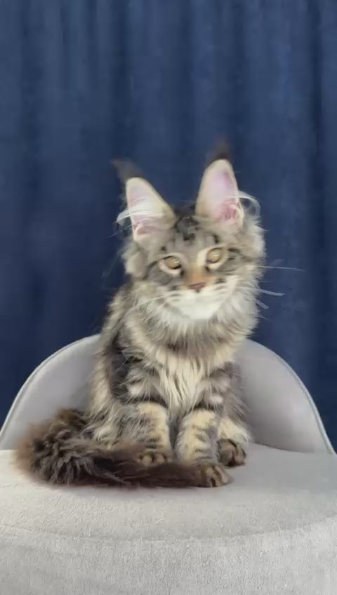 Quimmby Maine Coon female, black ticked tabby