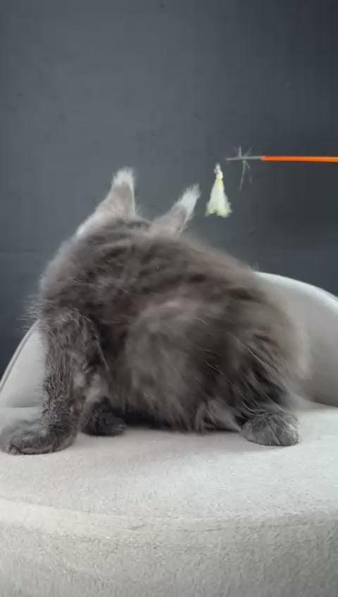 Quipster represents the pinnacle of Maine Coon breeding excellence. This striking black silver male embodies the breed's legendary characteristics: a robust, muscular frame, luxurious long coat with distinctive silver tipping, and the intelligent, affectionate temperament Maine Coons are renowned for. With his commanding presence and gentle nature, Quipster makes an exceptional companion for families seeking a large, intelligent cat. His impressive size, tufted ears, and bushy tail showcase authentic breed standards. Ideal for those who appreciate a cat with both striking aesthetics and a devoted, playful personality.