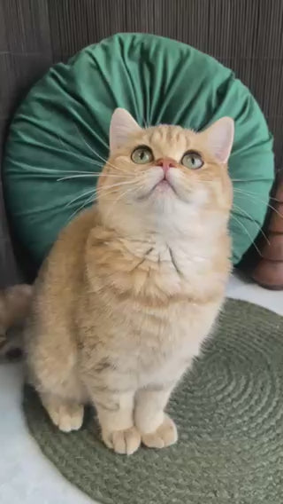 Meet Rashel, an exquisite British Shorthair female showcasing the stunning black golden spotted tabby pattern. This breed is renowned for its robust build, plush dense coat, and calm, affectionate temperament. Rashel displays the characteristic round face, full cheeks, and striking copper or gold eyes typical of the British Shorthair standard. Her distinctive spotted tabby markings create a luxurious appearance while her gentle nature makes her an ideal companion for families seeking a loyal, low-maintenance feline. British Shorthairs are known for their independence balanced with genuine affection, thriving in stable home environments.
