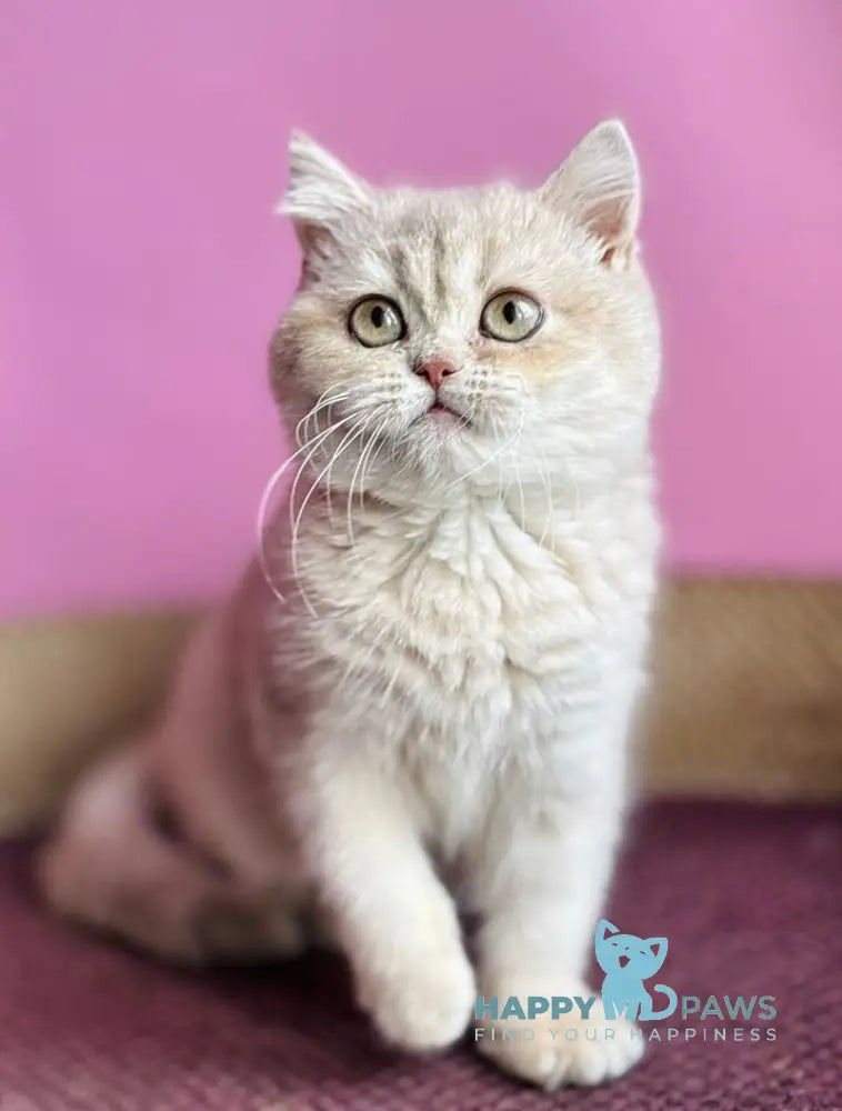 Rina is an exquisite British Shorthair female showcasing the rare and coveted lilac golden shaded coat pattern. This stunning coloration features a delicate blend of soft lilac undertones with warm golden highlights, creating a luminous, multi-dimensional appearance that sets her apart. British Shorthairs are renowned for their robust build, round face, and dense plush coat, combined with calm, affectionate temperaments that make them ideal companions. Rina embodies the breed standard with her substantial frame and gentle disposition, making her an exceptional choice for discerning feline enthusiasts seeking both aesthetic beauty and a devoted, low-maintenance family member.