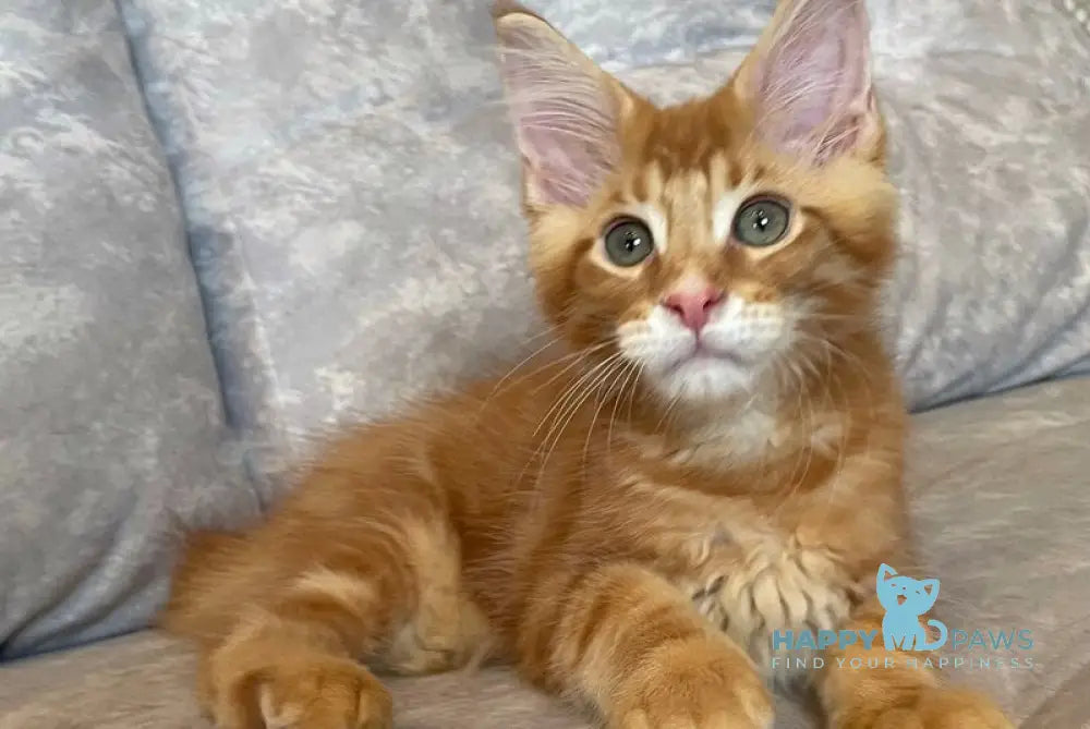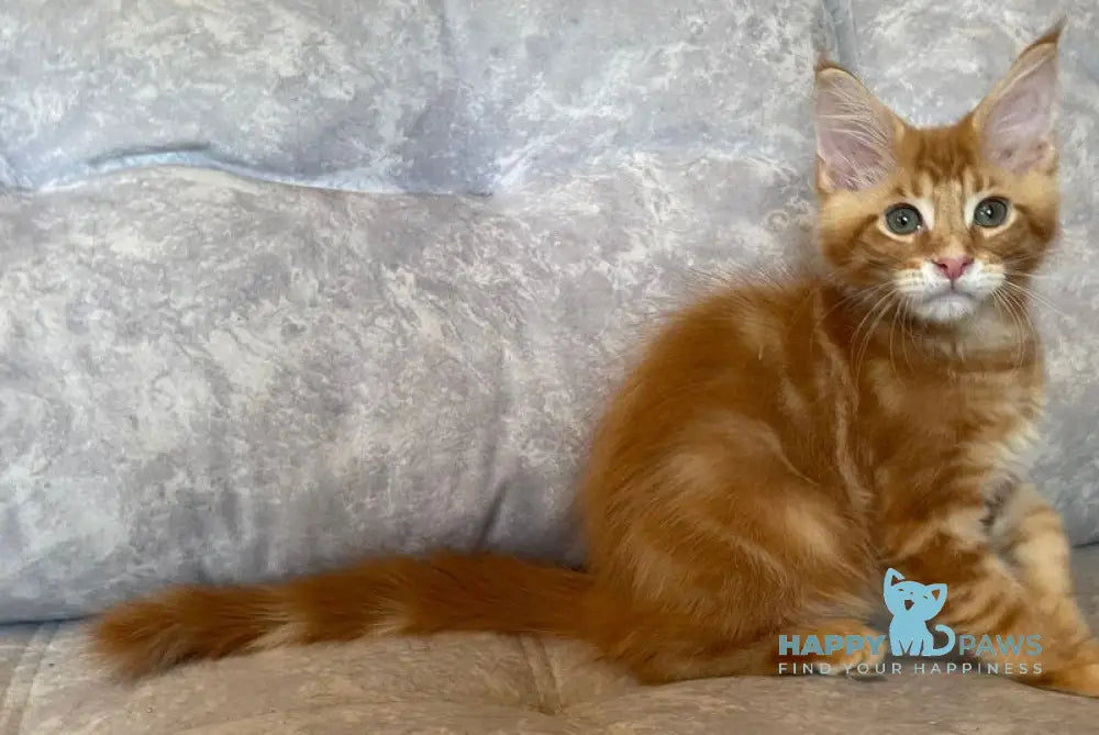 Rocky is a striking male Maine Coon with a rich red tabby coat, known for his impressive size and majestic appearance. This breed is praised for its gentle temperament and intelligence, making Rocky an excellent companion for families or individuals seeking a calm yet playful feline. His thick fur offers durability and warmth, ideal for various environments, while his sociable nature ensures he adapts well to social settings and other pets. Choose Rocky for a blend of beauty, strength, and affectionate personality characteristic of the Maine Coon lineage.